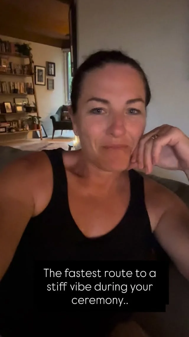 - no boring monologues, no merging of sands or releasing of doves, no cringey love analogies, no god, no who gives this woman, no objecting or forever holding your peace, no cherishing and def no obeying. NO BS. just your love story delivered with warmth, energy and humour.
